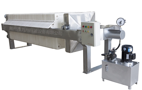 懸浮液用料泵送入濾機每個密閉的濾室,在壓力作用下,濾液透過濾層及濾布,經(jīng)濾布出液口排出,濾渣則留在濾框內(nèi),從而達到固液分離的目的。